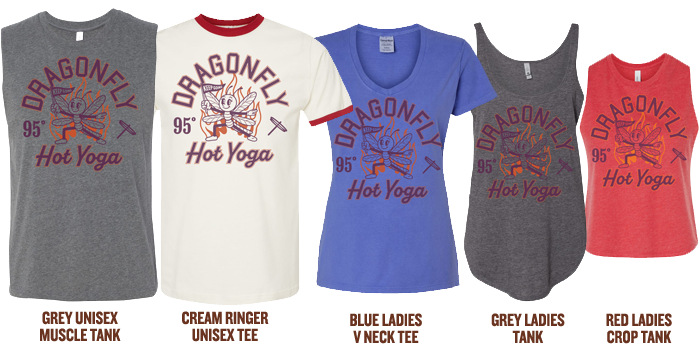 1. Sign up online using the form below or email info@dragonflyhotyoga.com to sign up and pay your $10. Select your tee or tank and indicate your shirt size.