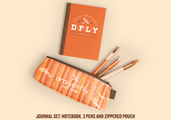 Here’s how it works: Sign up for the challenge, then attend 40 classes between March 1 – May 31. The $10 sign up fee will get you an exclusive journal set including notebook, 3 pens, and a zippered pouch (if you complete the challenge), and one entry into the raffle drawing (whether you complete the challenge or not!)